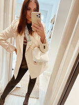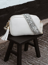 This Classic cream vegan leather grain bag complete with its own stripe camera strap, tassel and gold hardware its a super stylish addition to your collection. Perfect for everyday.